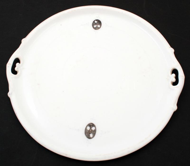 Beschreibung: Nagy méretű, kör alakú kínáló, C158 felirattal, kézzel festett, kopásnyomokkal,d:36cm