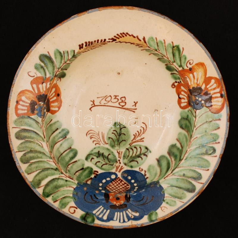 Népi motívumos mázas kerámia falitányér, "1958" felirattal, jelzés nél... https://www.darabanth.com/de/227-Fernauktion/227.0/Andere-Sammelgebiete/Keramiken~600117/Nepi-motivumos-mazas-keramia-falitanyer-1958-felirattal-jelzes-nelkul-kopasnyomokkal-~II1003811