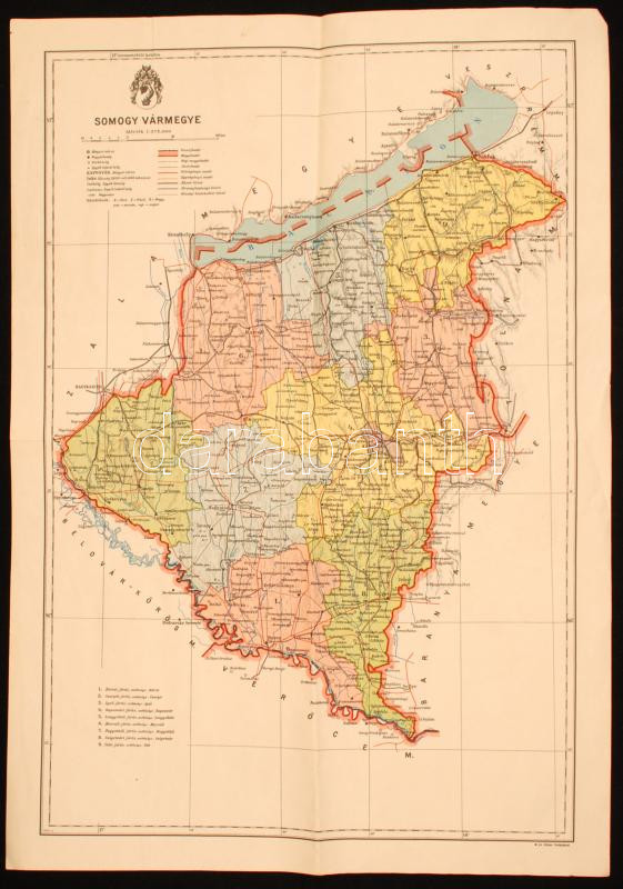 1934 Somogy vármegye térképe, M. kir. Állami Térképészet, 35x50 cm https://www.darabanth.com/de/227-Fernauktion/227.0/Andere-Sammelgebiete/Landkarten~200311/1934-Somogy-varmegye-terkepe-M-kir-Allami-Terkepeszet-35x50-cm~II1007334