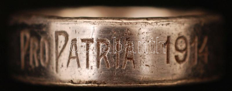 1914 Pro Patria katonai, fém emlékgyűrű / 1914 Military ring https://www.darabanth.com/de/227-Fernauktion/227.0/Andere-Sammelgebiete/Militaria~200310/1914-Pro-Patria-katonai-fem-emlekgyuru-1914-Military-ring~II1006671