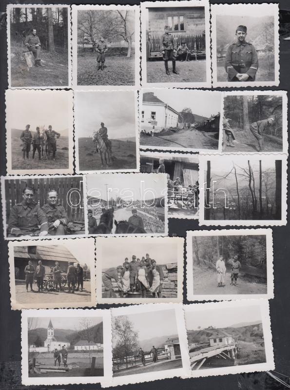 II. világháborús ukrán katonai fotók, összesen 52db, mind feliratozva, különböző helyszínek: Rahó, Kőrösmező, Haravalja ect. Két méretben; 6x5cm, 6,5x5,5cm