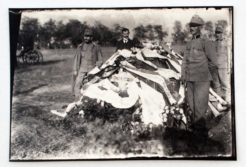 Beschreibung: cca 1914-1918 Maschl Emil, élt 22 évet, katonai temetés, korabeli üveglemez negatívról készült későbbi másolat, 10x15 cm