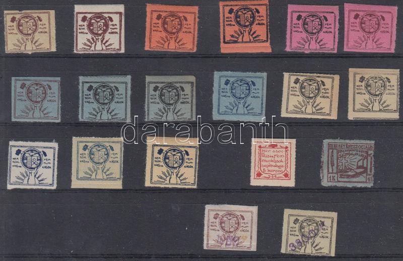 Beschreibung: 19 db segélybélyeg Keresztényszocialista fémmunkások védelmi alapja