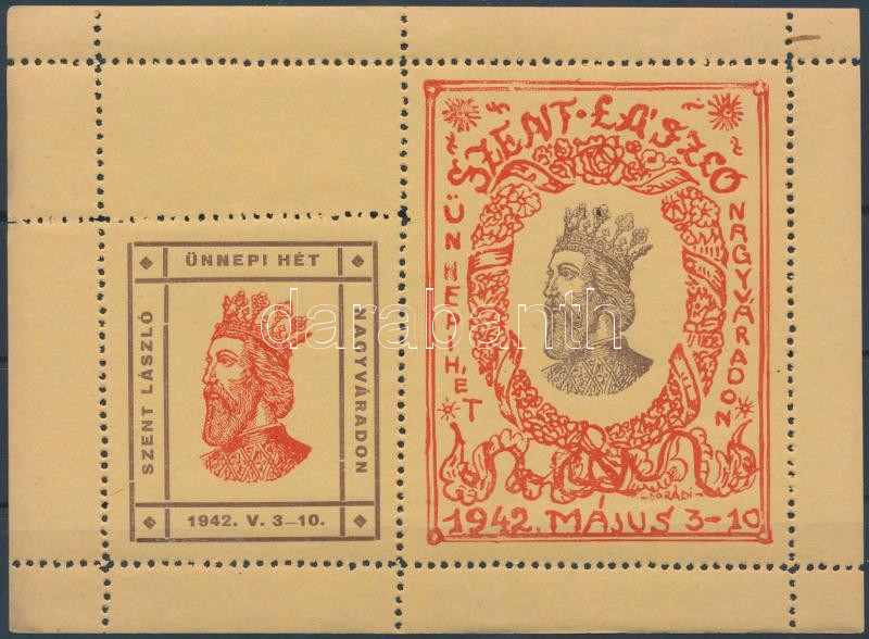 1942 Szent László ünnepi hét Nagyváradon emlék kisív sárga papíron https://www.darabanth.com/de/227-Fernauktion/227.0/Andere-Sammelgebiete/Paraphilatelie~200338/1942-Szent-Laszlo-unnepi-het-Nagyvaradon-emlek-kisiv-sarga-papiron~II935576