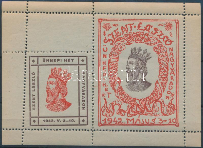 1942 Szent László ünnepi hét Nagyváradon emlék kisív zöldesszürke papí... https://www.darabanth.com/de/227-Fernauktion/227.0/Andere-Sammelgebiete/Paraphilatelie~200338/1942-Szent-Laszlo-unnepi-het-Nagyvaradon-emlek-kisiv-zoldesszurke-papiron~II935558