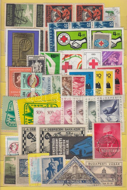 Beschreibung: 51 db magyar levélzáró és egyéb parafilatélia (Magyar Vöröskereszt, Budapesti Vásár, Légoltalmi Liga, Nemzeti nagy létünk temetője Mohács stb.)