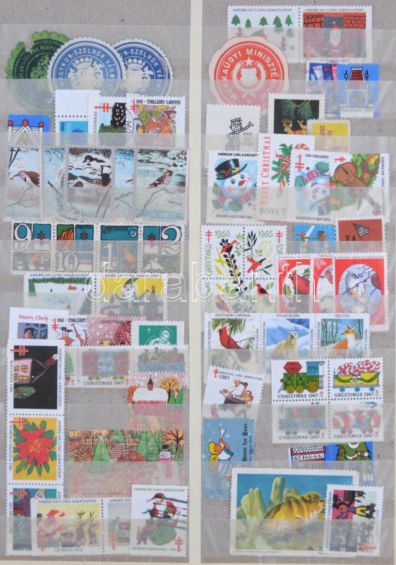 Beschreibung: Kb. 1.200 db magyar és külföldi levélzáró 8 lapos berakóban