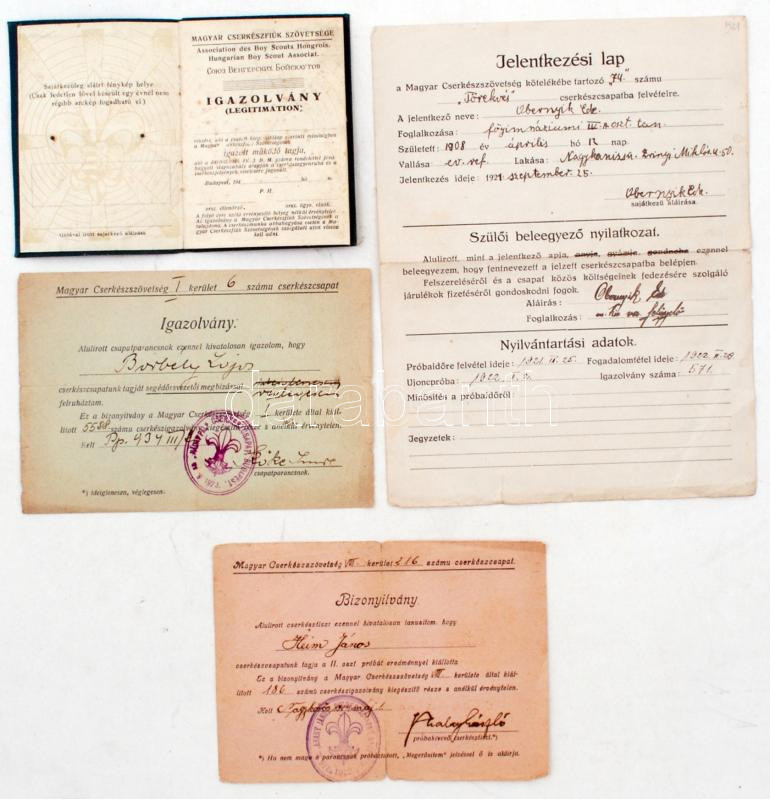 Beschreibung: cca 1930 Cserkész igazolvány + 3 db cserkész igazolás