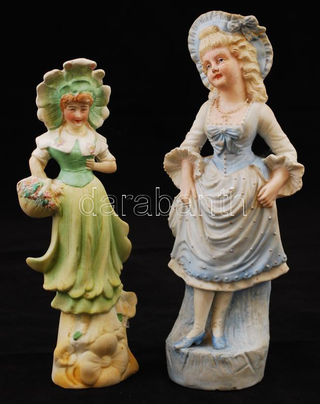 Beschreibung: 2 db nőalak, festett bisquit porcelán, jelzés nélkül, m: 20,5 ill. 23 cm