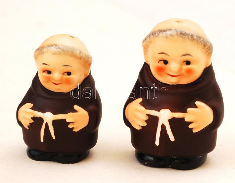 Beschreibung: 2 db szerzetest mintázó Goebel porcelán bors-, illetve sószóró, kézzel festett, jelzett, alján apró kopásnyomokkal, m: 7 ill. 6 cm