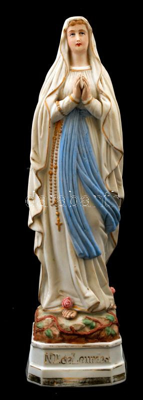 Beschreibung: A lourdes-i Szűzanya, festett bisquit porcelán, jelzés nélkül, kopásnyomokkal, lepattanásokkal, m: 30 cm