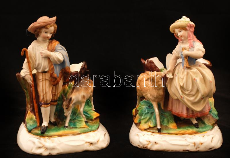 Beschreibung: Erdei kislány és kisfiú, 2 db festett mázas porcelán tolltartó, jelzés nélkül, kopásnyomokkal, m: 17 cm