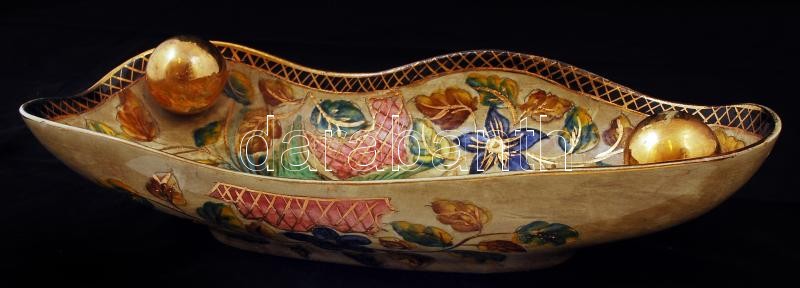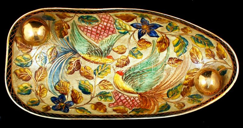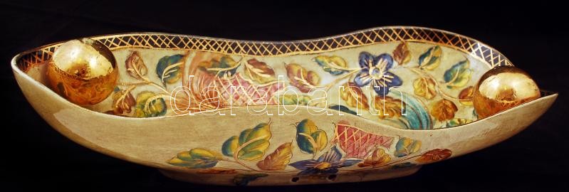 Beschreibung: H. Bequet Quaregnon belga dísztál, kézzel festett, jelzett, hibátlan, kopott aranyozás, h:40 cm, m:7 cm