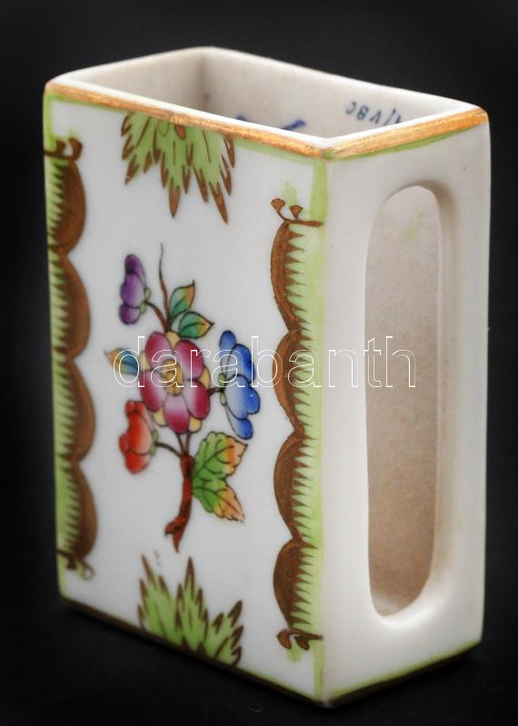 Beschreibung: Herendi Viktória mintás gyufatartó, kézzel festett, jelzett, hibátlan, m:6 cm
