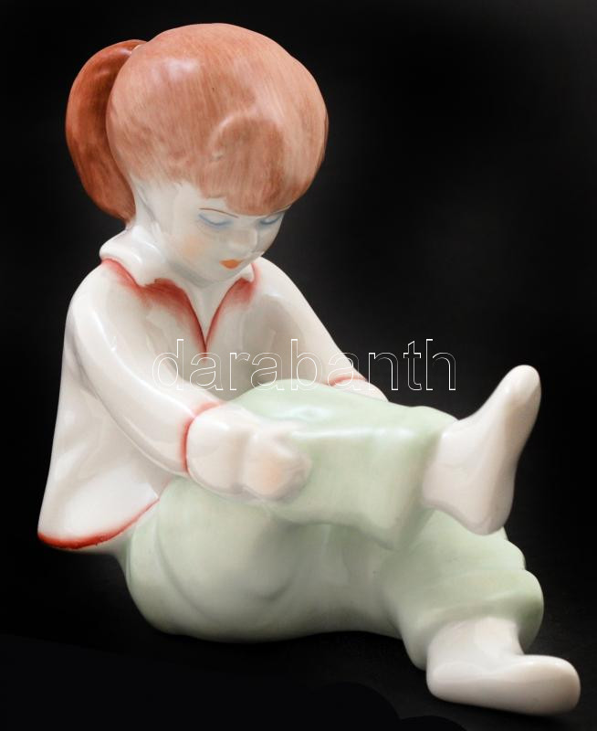 Beschreibung: Öltöző Aquincumi porcelán kislány, kézzel festett, jelzett, hibátlan, m: 10 cm