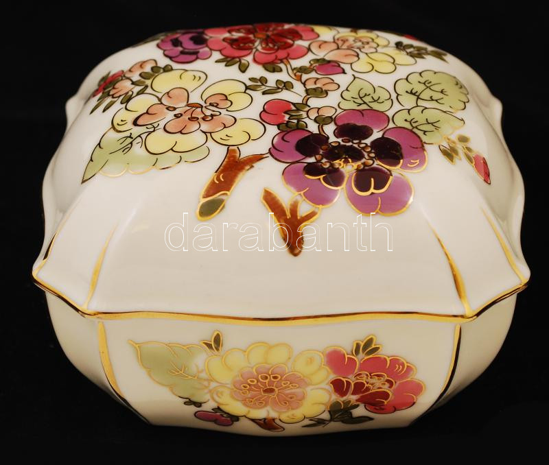 Beschreibung: Zsolnay pillangó mintás ékszeres doboz, kézzel festett, hibátlan, jelzett, 10,5×10,5 cm