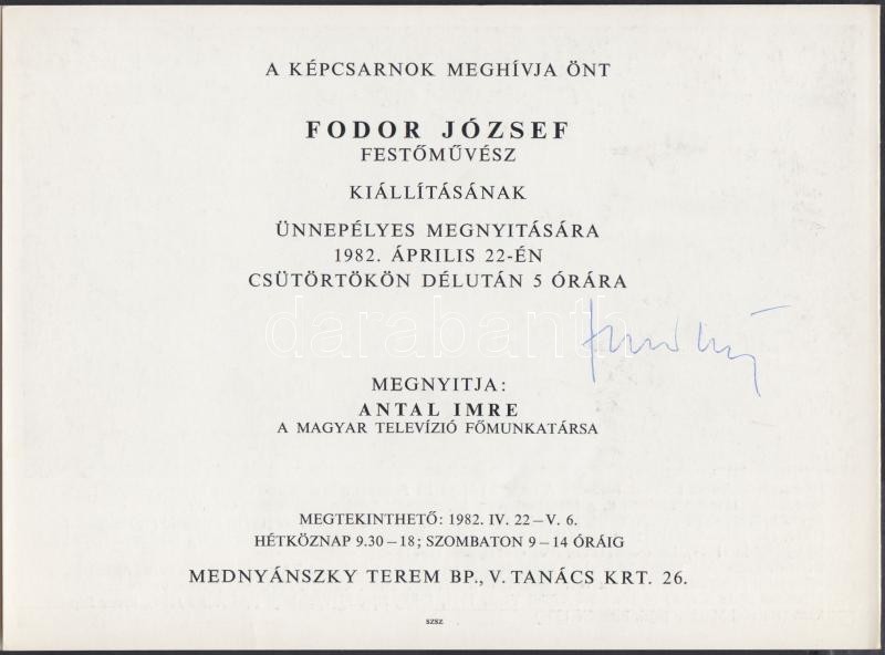 Beschreibung: Fodor József(1935-) festőművész aláírása a kiállítására szóló meghívón