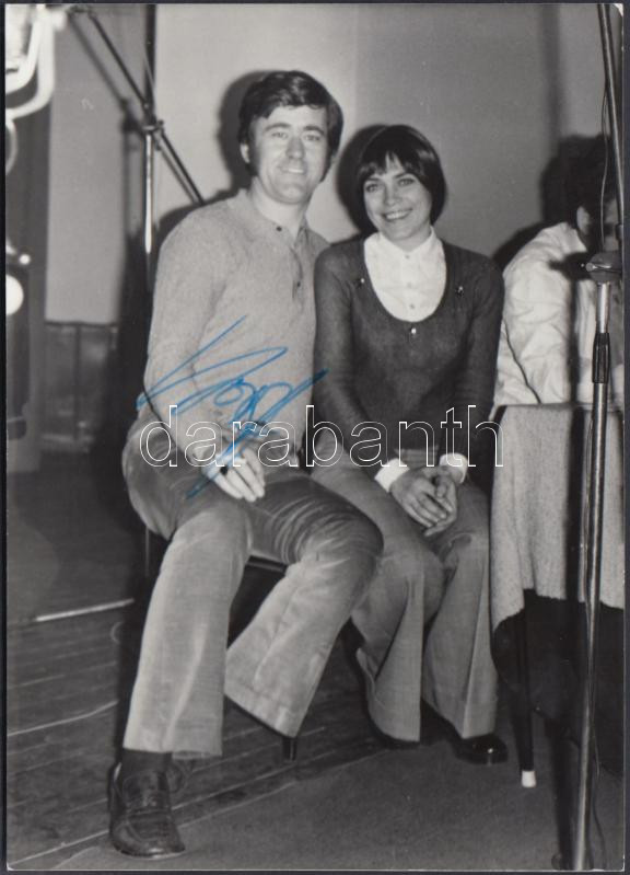 Beschreibung: Koós János, Kupsa (1937- ) Artisjus-díjas magyar énekes, humorista, színművész aláírása az őt és Kovács Kati dalénekesnőt ábrázoló képen. 15x10cm