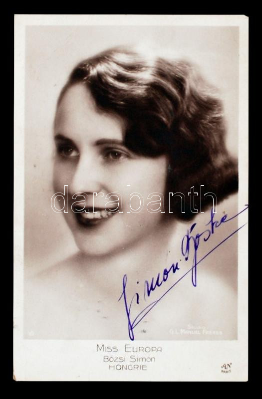 Simon Bözske (Erzsébet), Miss Europa szépségkirálynő aláírt képeslap ... https://www.darabanth.com/de/227-Fernauktion/227.0/Andere-Sammelgebiete/Signatur~200342/Simon-Bozske-Erzsebet-Miss-Europa-szepsegkiralyno-alairt-kepeslap--Autograph-signed-po~II1009715