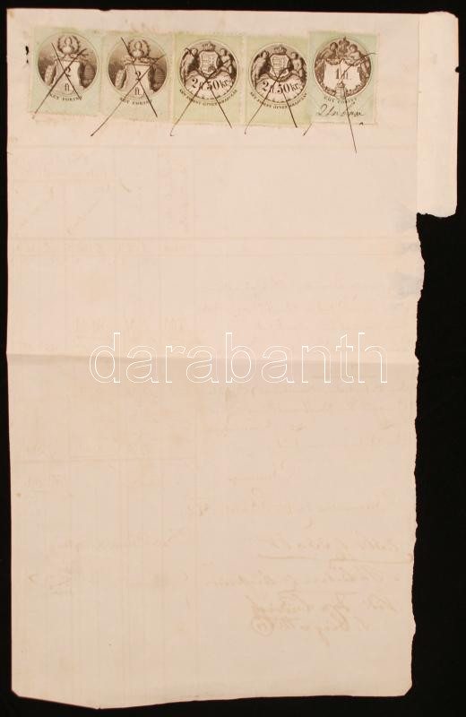 1872 Bérjegyzék 2×2 Ft, 2×2,50 Ft, 1 Ft okmánybélyegekkel https://www.darabanth.com/de/227-Fernauktion/227.0/Andere-Sammelgebiete/Stempelmarken~200339/1872-Berjegyzek-2C3972-Ft-2C3972-50-Ft-1-Ft-okmanybelyegekkel~II1008987