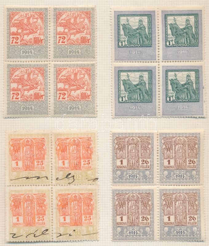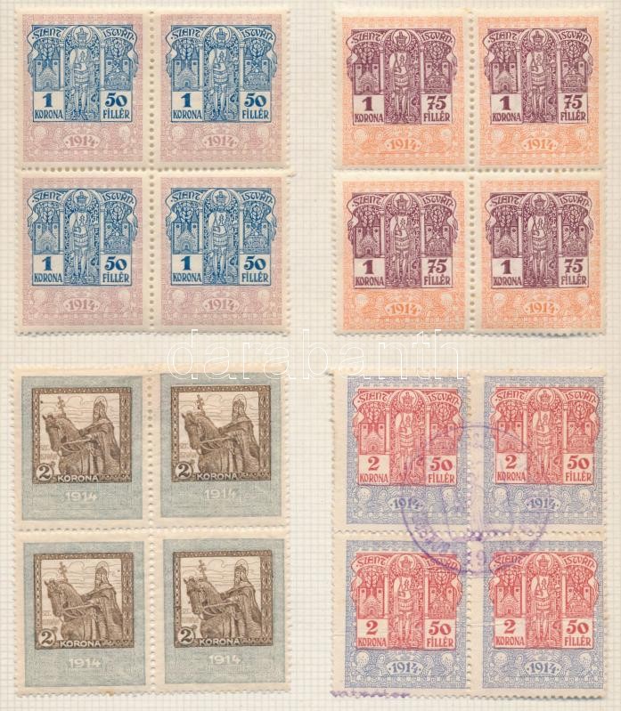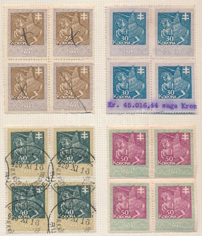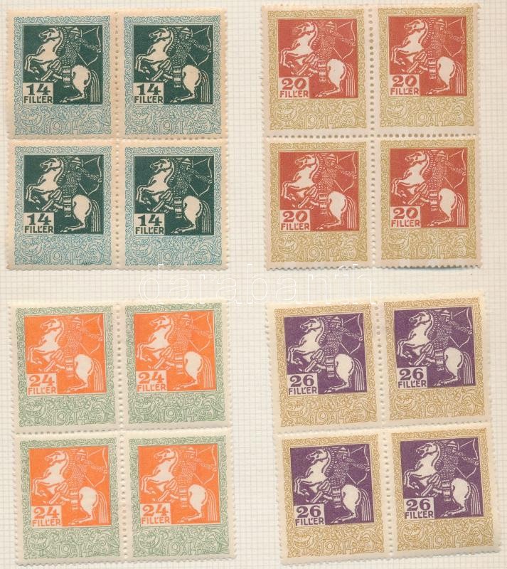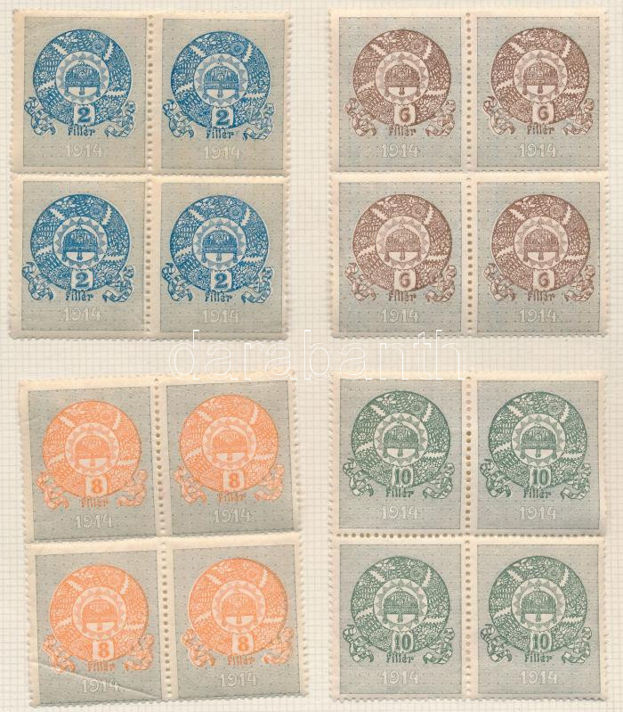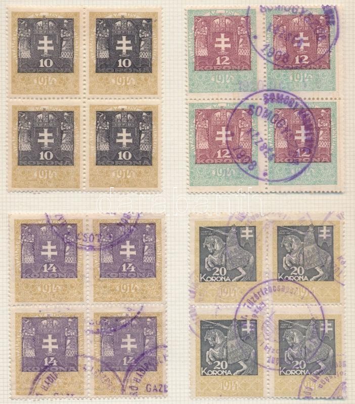 1914 31 érték négyestömbökben 12-es fogazással, és álló vízjellel https://www.darabanth.com/de/227-Fernauktion/227.0/Andere-Sammelgebiete/Stempelmarken~200339/1914-31-ertek-negyestombokben-12-es-fogazassal-es-allo-vizjellel~II1012051