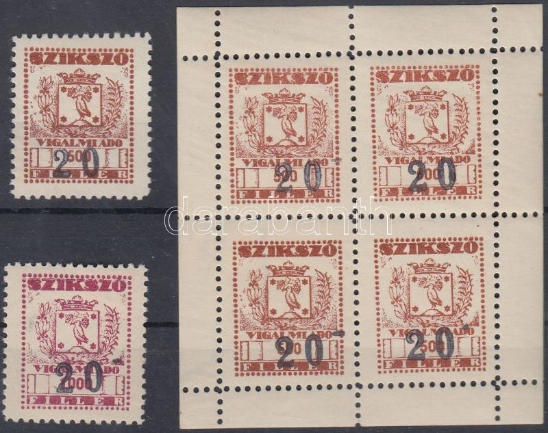 Beschreibung: 1948 Szikszó városi illetékbélyeg 20/500f + kisív, 20/1000f