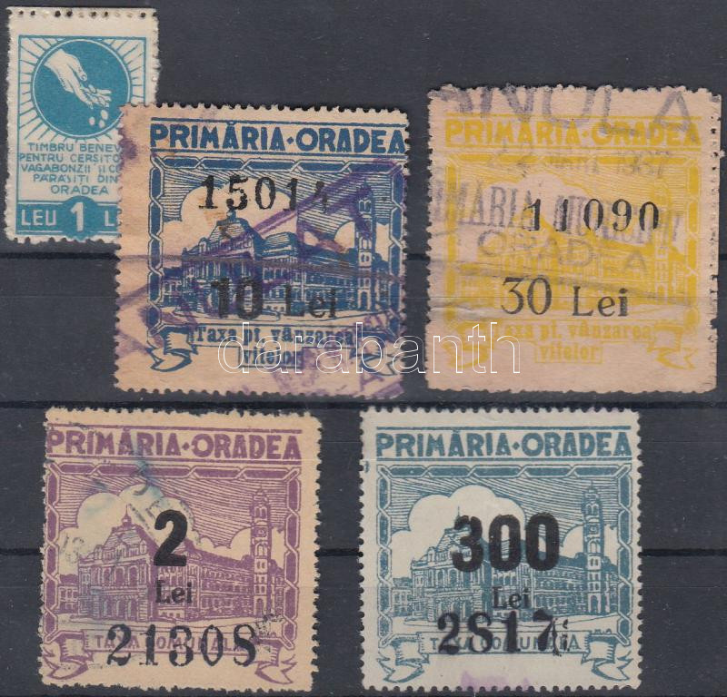 Beschreibung: 5 db Nagyvárad városi illetékbélyeg