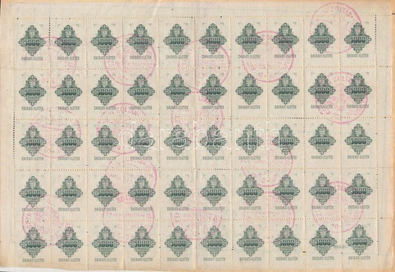Fél-fél ív 5000 és 10000P okirati illetékbélyegek papírlapon https://www.darabanth.com/de/227-Fernauktion/227.0/Andere-Sammelgebiete/Stempelmarken~200339/Fel-fel-iv-5000-es-10000P-okirati-illetekbelyegek-papirlapon~II1012569