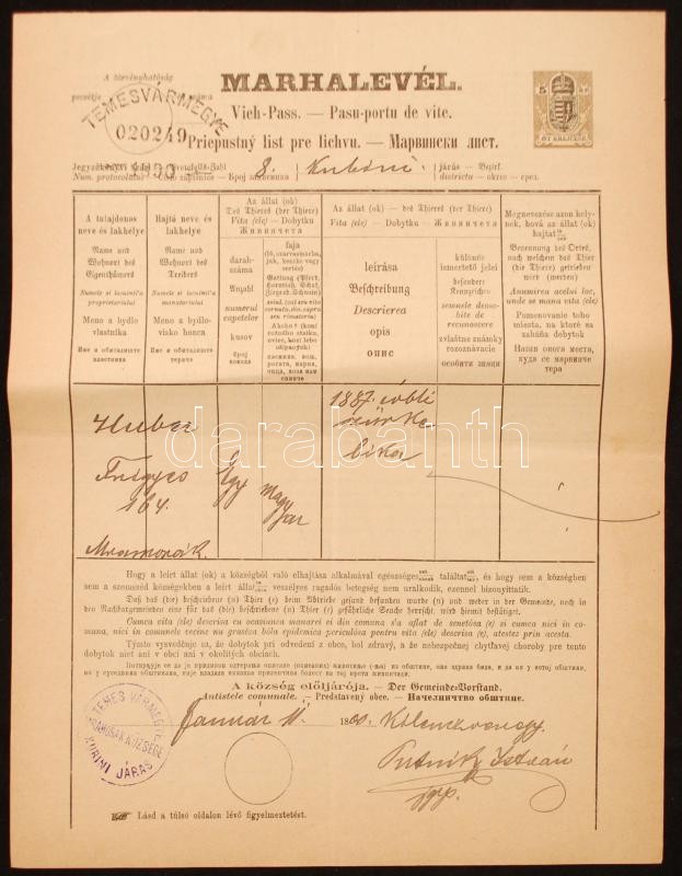 cca 1880-1910 5 db klf okmánybélyeges okmány, marhalevél https://www.darabanth.com/de/227-Fernauktion/227.0/Andere-Sammelgebiete/Stempelmarken~200339/cca-1880-1910-5-db-klf-okmanybelyeges-okmany-marhalevel~II1006418