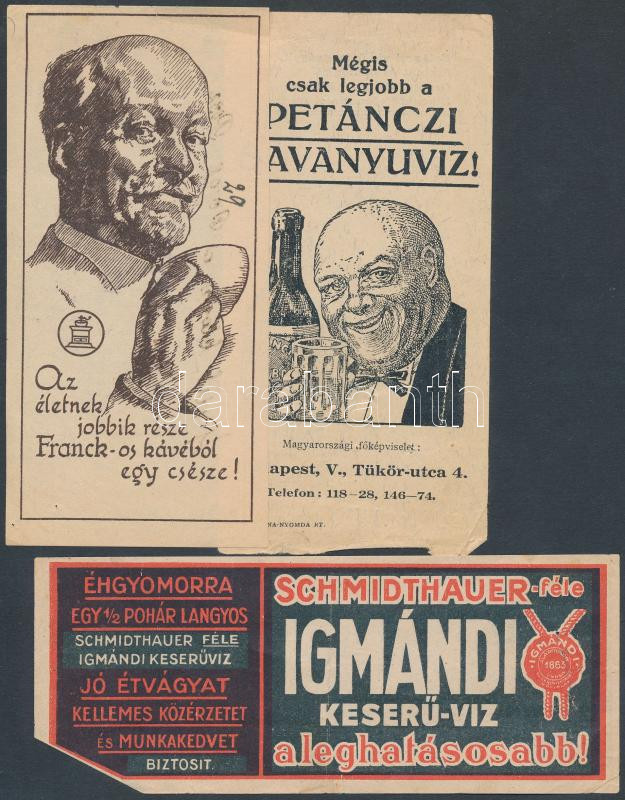 Korabeli számolócédulák, 3db, Petánczi, ill., Ignándi savanyúvíz, Fran... https://www.darabanth.com/de/227-Fernauktion/227.0/Andere-Sammelgebiete/Werbungen~200348/Korabeli-szamolocedulak-3db-Petanczi-ill-Ignandi-savanyuviz-Franck-kave~II1003178