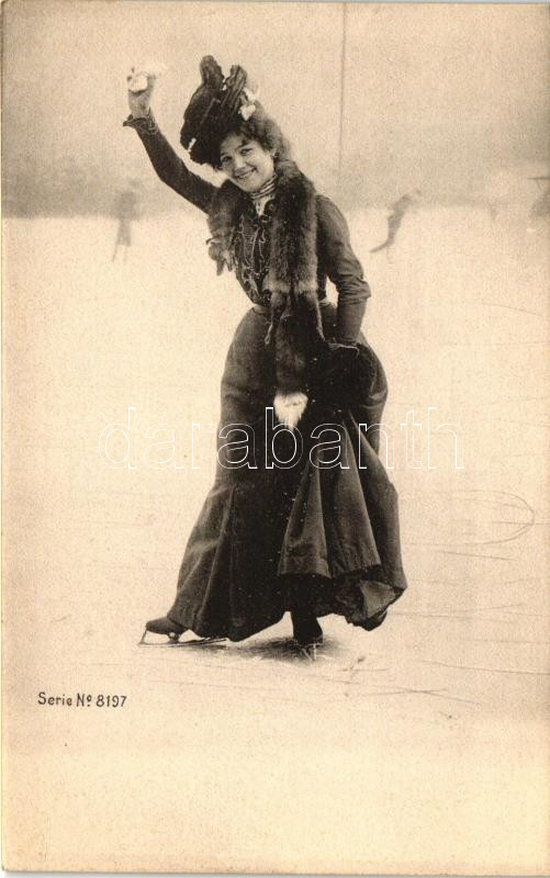 Ice skating lady with snowball, Serie No. 8197. https://www.darabanth.com/de/227-Fernauktion/227.0/Ansichtskarten/Damen~600062/Ice-skating-lady-with-snowball-Serie-No-8197~II1010891