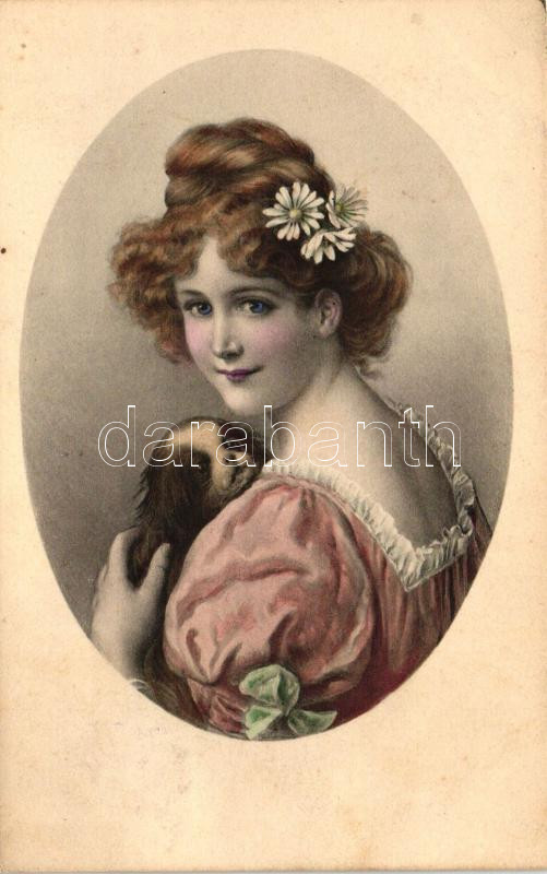 Lady with dog, M.Munk Vienne Nr. 718. https://www.darabanth.com/de/227-Fernauktion/227.0/Ansichtskarten/Damen~600062/Lady-with-dog-MMunk-Vienne-Nr-718~II1011459