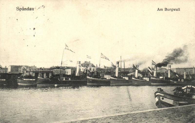 Berlin, Spandau, Am Burgwall / At the Castle Wall, ships (EK) https://www.darabanth.com/de/227-Fernauktion/227.0/Ansichtskarten/Deutschland~600048/Berlin-Spandau-Am-Burgwall-At-the-Castle-Wall-ships-EK~II1008469