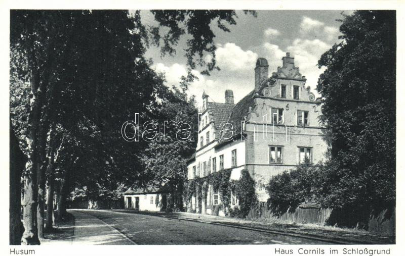 Husum, Haus Cornils im Schlossgrund (wet dagame) https://www.darabanth.com/de/227-Fernauktion/227.0/Ansichtskarten/Deutschland~600048/Husum-Haus-Cornils-im-Schlossgrund-wet-dagame~II1007676