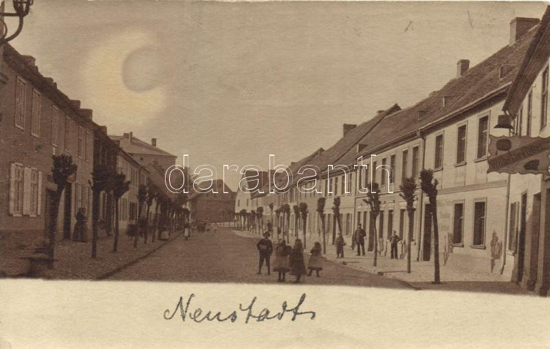 Beschreibung: Neustadt, street, shop of Wilhelm Fütler photo (small tear)