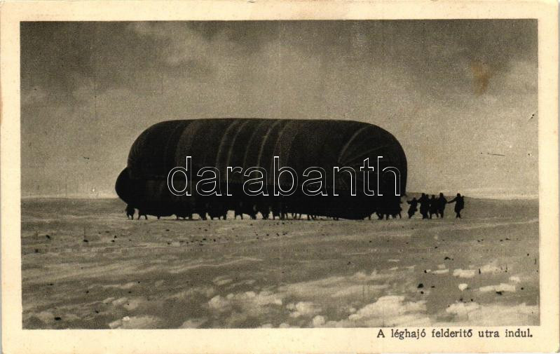 Beschreibung: A léghajó felderítő útra indul, Érdekes Újság kiadása / WWI Hungarian military airship