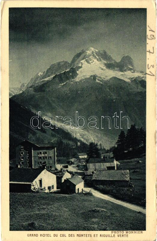 Col des Montets, Hotel, Aiguille Verte mountain (EK) https://www.darabanth.com/de/227-Fernauktion/227.0/Ansichtskarten/Frankreich~600076/Col-des-Montets-Hotel-Aiguille-Verte-mountain-EK~II1006779
