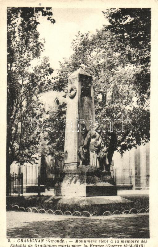 Gradignan, WWI Military monument for the orphans (fa) https://www.darabanth.com/de/227-Fernauktion/227.0/Ansichtskarten/Frankreich~600076/Gradignan-WWI-Military-monument-for-the-orphans-fa~II1007609