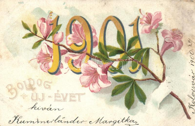 1901 New Year, flower litho (EK) https://www.darabanth.com/de/227-Fernauktion/227.0/Ansichtskarten/GruC39Fkarte~600107/1901-New-Year-flower-litho-EK~II1007197