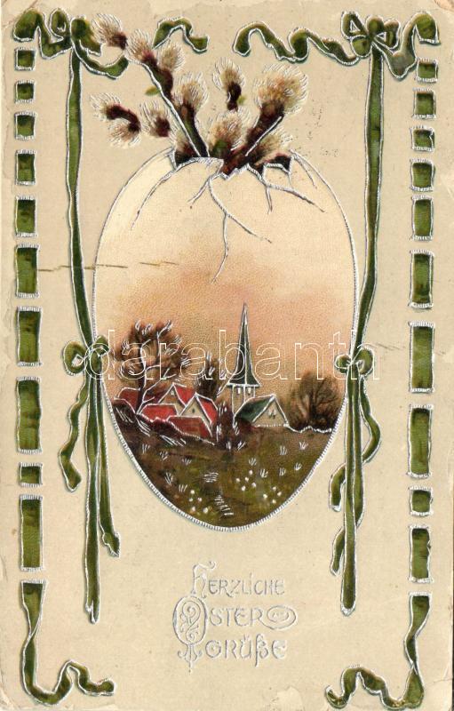 Easter, Landscape in az egg, silver decoration litho (EK) https://www.darabanth.com/de/227-Fernauktion/227.0/Ansichtskarten/GruC39Fkarte~600107/Easter-Landscape-in-az-egg-silver-decoration-litho-EK~II1007021
