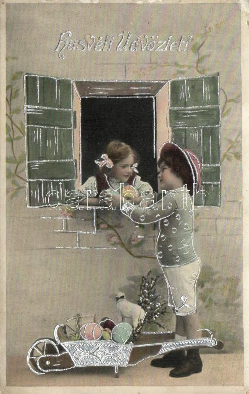 Easter, children couple, silver decoration (EK) https://www.darabanth.com/de/227-Fernauktion/227.0/Ansichtskarten/GruC39Fkarte~600107/Easter-children-couple-silver-decoration-EK~II1007025