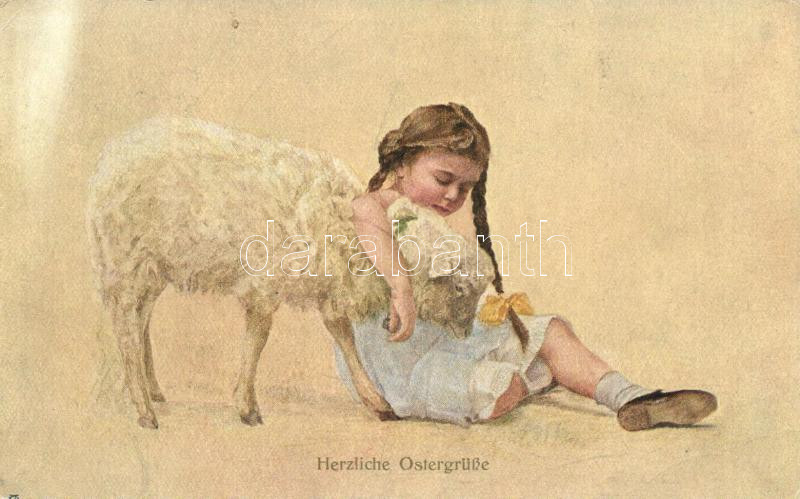Easter, little girl with lamb, Jobst Nr. 140. Serie 8. (EK) https://www.darabanth.com/de/227-Fernauktion/227.0/Ansichtskarten/GruC39Fkarte~600107/Easter-little-girl-with-lamb-Jobst-Nr-140-Serie-8-EK~II1007105