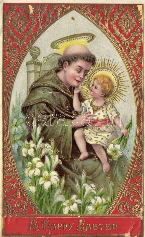 Easter, monk with angel, golden decoration litho (fa) https://www.darabanth.com/de/227-Fernauktion/227.0/Ansichtskarten/GruC39Fkarte~600107/Easter-monk-with-angel-golden-decoration-litho-fa~II1007073