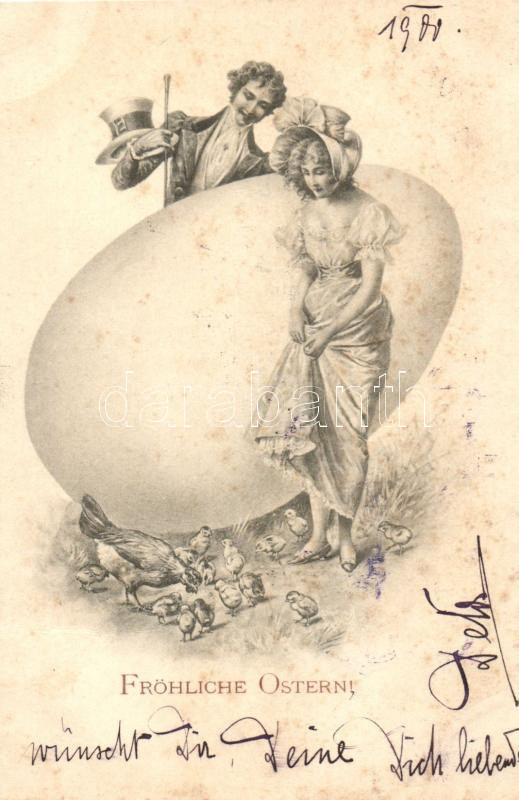 Easter, romantic couple with giant egg and chickens, M. Munk Vienne (R... https://www.darabanth.com/de/227-Fernauktion/227.0/Ansichtskarten/GruC39Fkarte~600107/Easter-romantic-couple-with-giant-egg-and-chickens-M-Munk-Vienne-Rb~II1007088