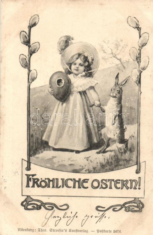Easter, walking rabbit with little girl, T.S.N. 5676. https://www.darabanth.com/de/227-Fernauktion/227.0/Ansichtskarten/GruC39Fkarte~600107/Easter-walking-rabbit-with-little-girl-TSN-5676~II1007085