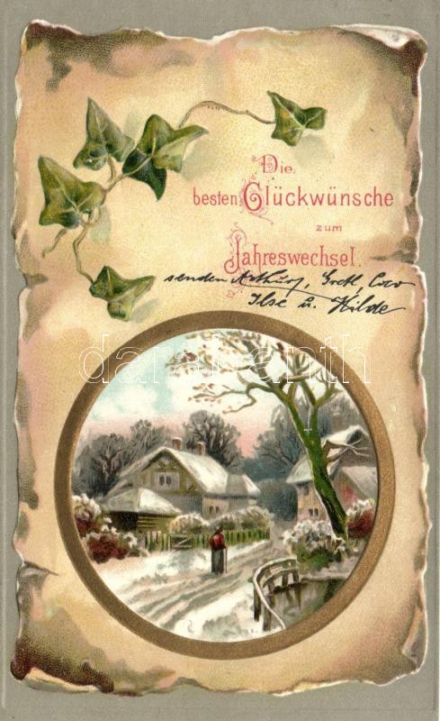Beschreibung: New Year, winter landscape, L&K Serie No. 1620. Emb. litho