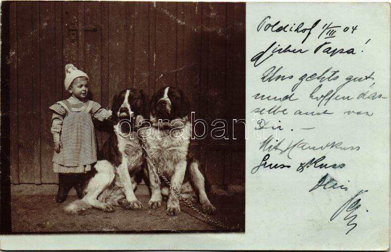 1904 Little child with St. Bernard dogs photo (EK) https://www.darabanth.com/de/227-Fernauktion/227.0/Ansichtskarten/Hunde~600075/1904-Little-child-with-St-Bernard-dogs-photo-EK~II1011395