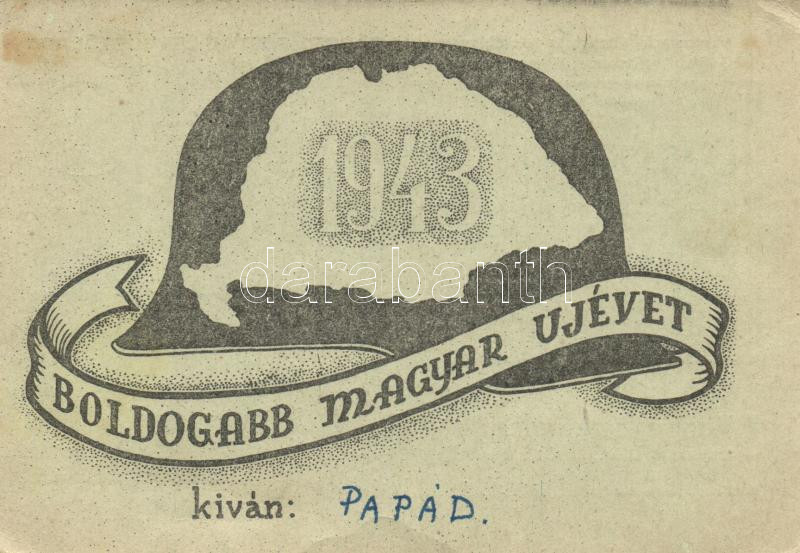 1943 Boldog Magyar Újévet! Második Világháborús tábori postai levelező... https://www.darabanth.com/de/227-Fernauktion/227.0/Ansichtskarten/Irredenta~600066/1943-Boldog-Magyar-Ujevet-Masodik-Vilaghaborus-tabori-postai-levelezolap-WWII-Military-ne~II1005703