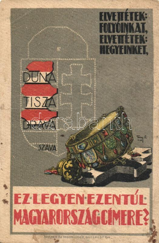 Ez legyen ezentúl Magyarország címere? / Hungarian irredenta, crown, c... https://www.darabanth.com/de/227-Fernauktion/227.0/Ansichtskarten/Irredenta~600066/Ez-legyen-ezentul-Magyarorszag-cimere-Hungarian-irredenta-crown-coat-of-arms-s-Tary-L-fa~II1008751