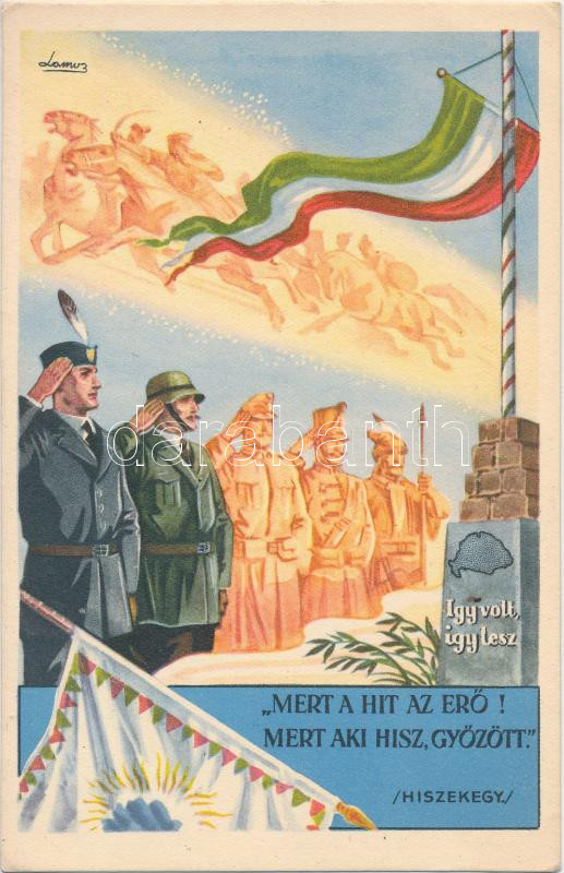 Mert a hit az erő, mert aki hisz, győzött; Hiszekegy / Hungarian irred... https://www.darabanth.com/de/227-Fernauktion/227.0/Ansichtskarten/Irredenta~600066/Mert-a-hit-az-ero-mert-aki-hisz-gyozott-Hiszekegy-Hungarian-irredenta-flag-s-Lamoss-EK~II1009118